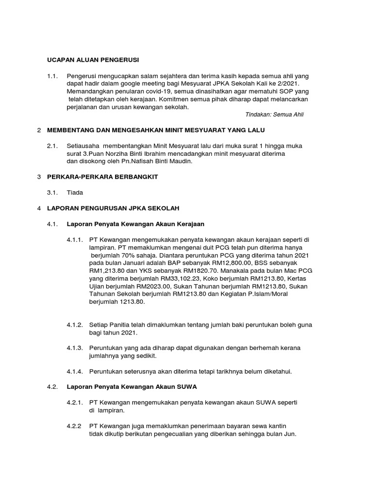 Minit Mesyuarat Kewangan 2021 Pdf