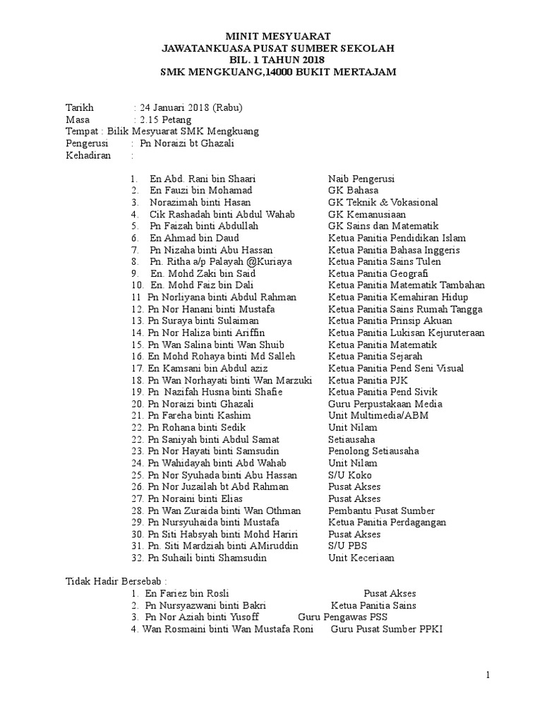 Minit Mesyuarat Pss 1 2018 Pdf